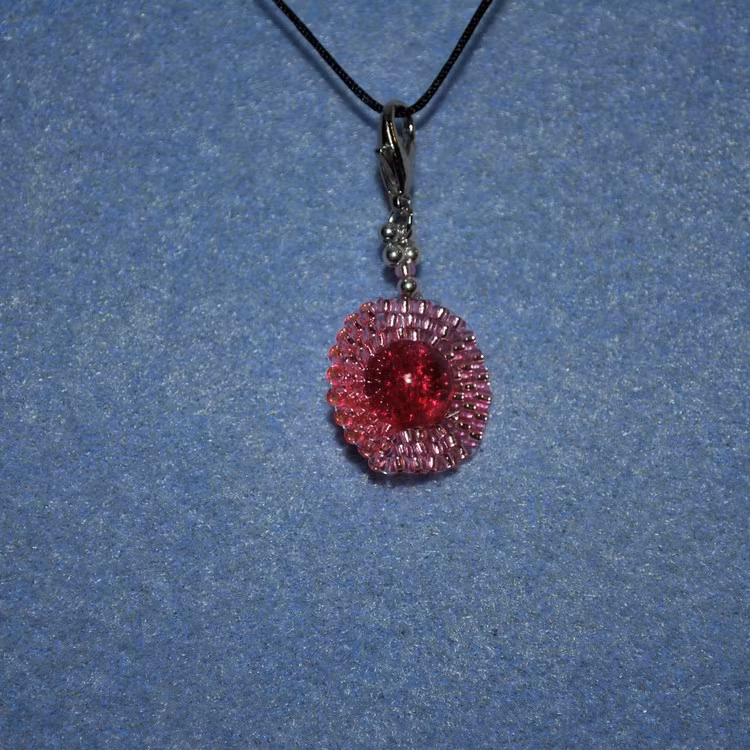 Silverpläterade detaljer samt klolås med rosa glaspärla och seadbeads